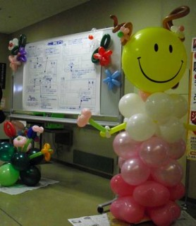 東京新宿区・国立国際医療センターの遊びのボランティア「ガラガラドン」に、ぷくぷくばるーんから大竹と岩月がバルーンとポンプを持って、参加しました。